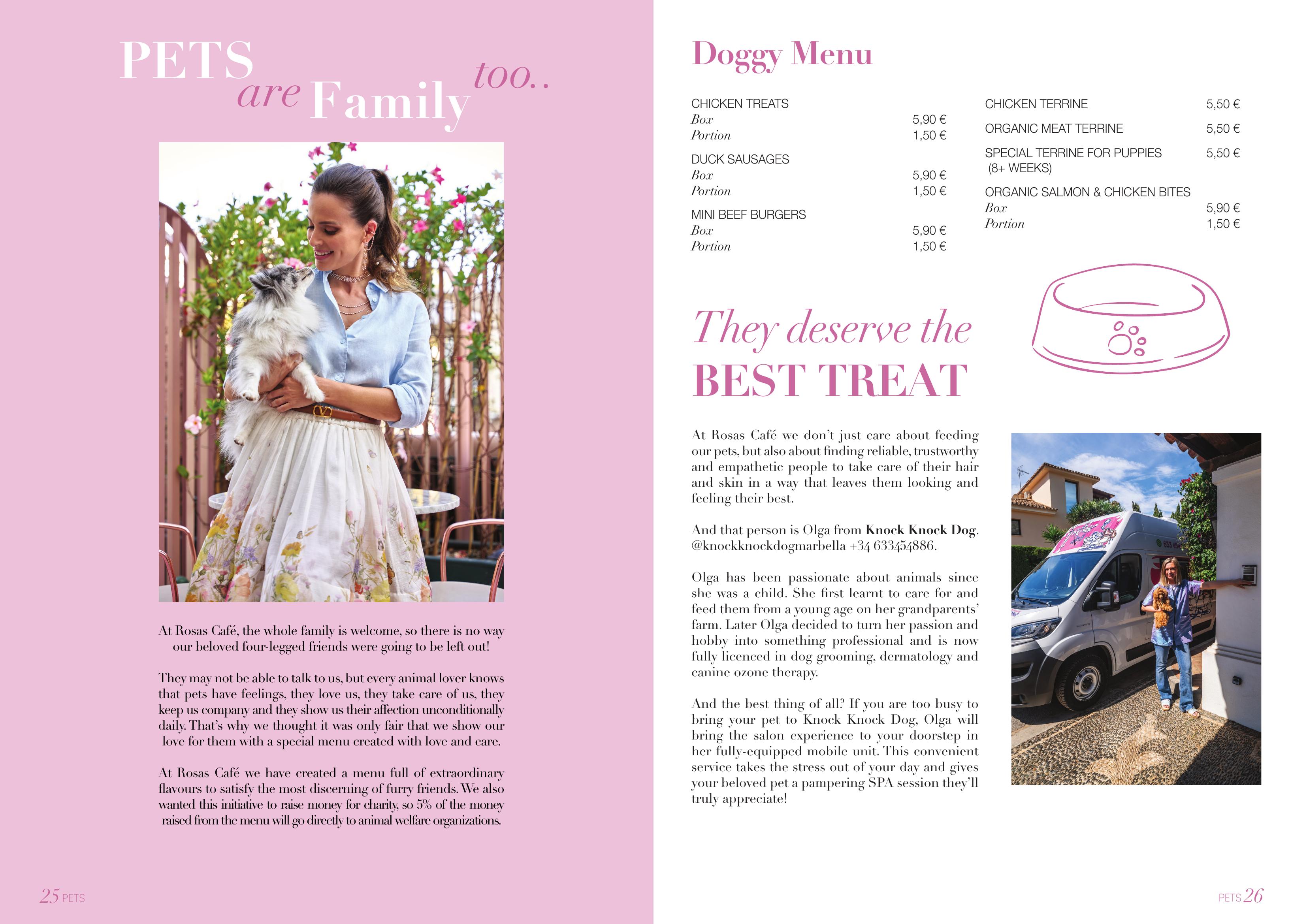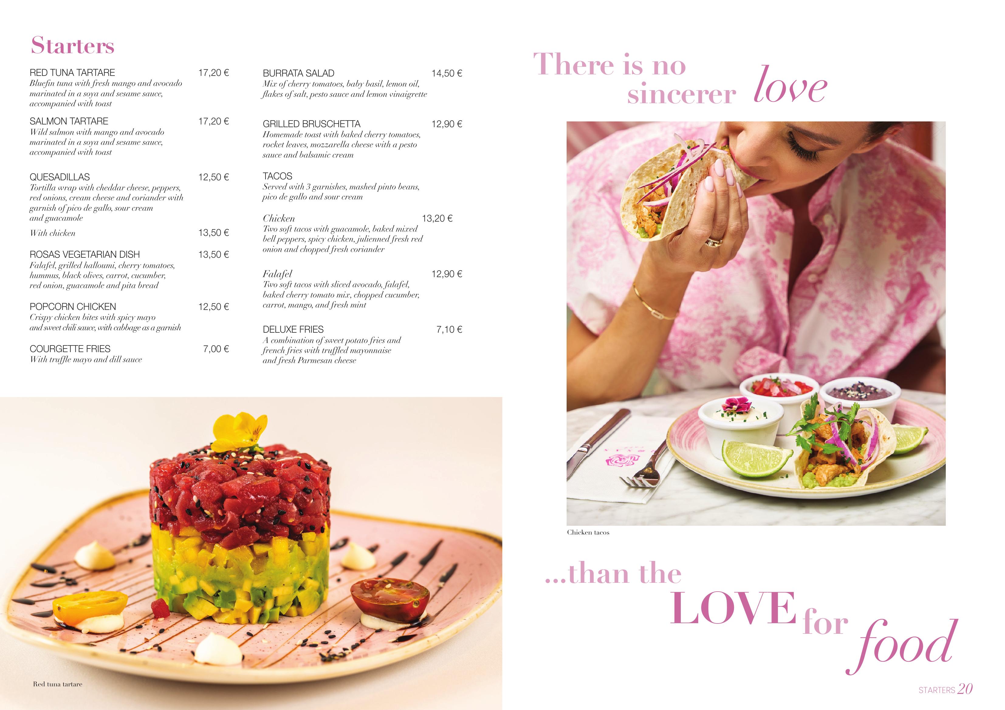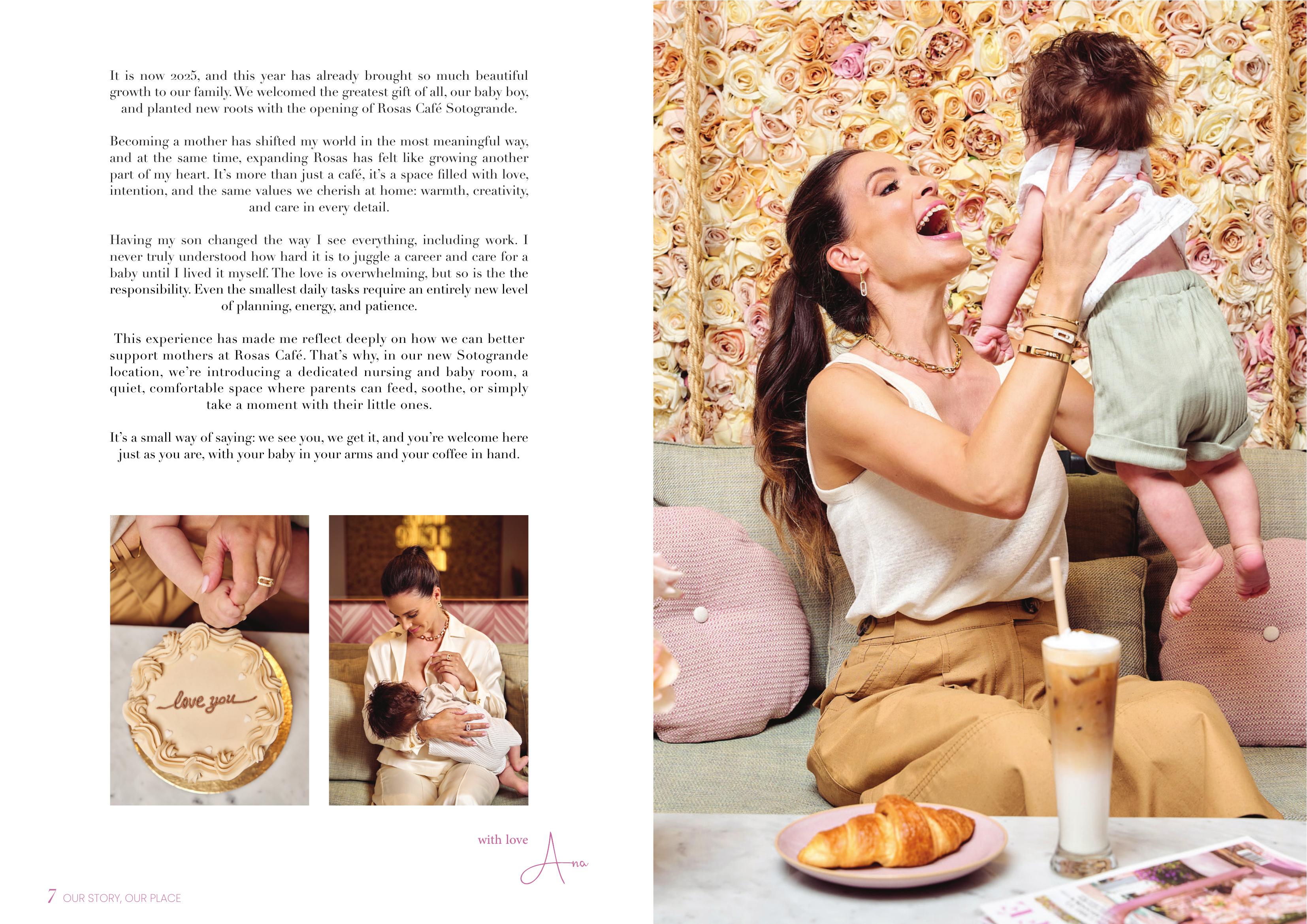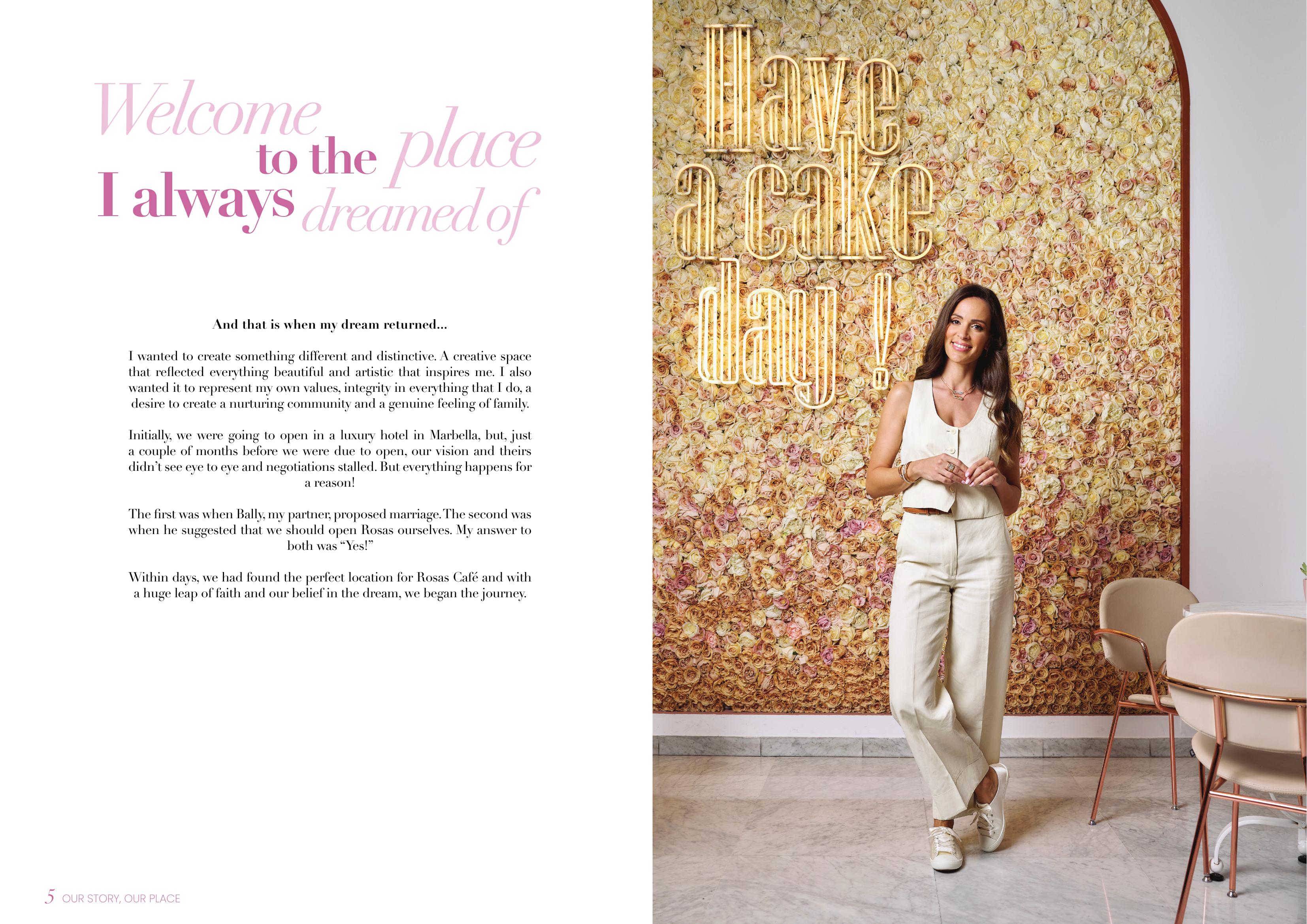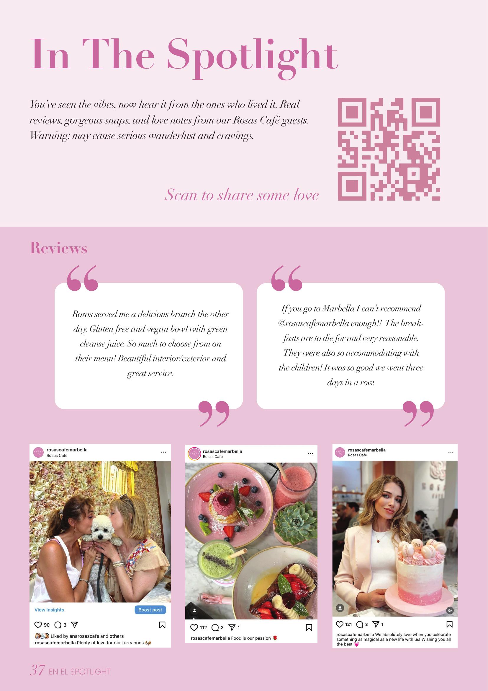 Rosas Café Menu Magazine pairs our seasonal dishes with the heart of our story; pages of family driven inspiration, behind the scenes creativity, and the dream that sparked Rosas. Between mouth watering photos and dish descriptions, you’ll find mini features on Marbella’s must see beaches, boutiques, and hidden streets, making every flip both a taste experience and a local guide.